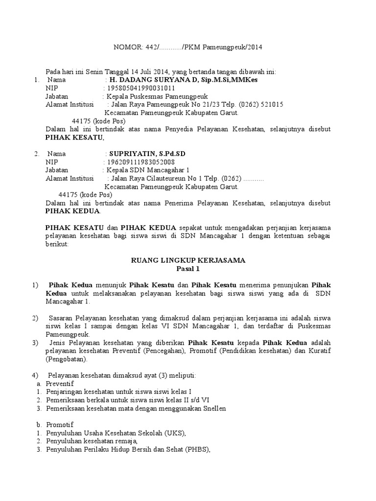 Surat keterangan kerja juga berlaku untuk karyawan kontrak. Bukausahayuk.com akan membagikannya kepada anda. Contoh surat perjanjian kerjasama perusahaan. Baca juga contoh slip gaji. Dengan adanya surat perjanjian kerjasama, maka seluruh pihak dalam suatu kegiatan kerjasama dapat merasa tenang dan aman. Sistem kontrak dan pema!aran 6emi terjalinnya <b>kerjasama yang baik sistematis dan saling menguntungkan<b> maka kami memberikan sistem <b>kontrak minimal 7. Apakah contoh surat ini bisa digunakan untuk kerjasama antara pihak brand dengan perusahaan produksi/vendor apparel. Beberapa contoh surat penawaran kerjasama dengan berbagai macam keperluan, seperti penawaran produk atau jasa, penawaran bisnis, penawaran. Berdasarkan jam kerja yang tidak sama untuk setiap defisi, maka pihak catering secara profesional akan melayani pesanan sesuai dengan waktu yang telah ditentukan oleh sistem kontrak dan pembayaran. Surat perjanjian kerjasama antara pt. Besar harapan kami untuk dapat menjalin kerjasama dengan perusahaan yang bapak/ ibu pimpin. Contoh surat pengalaman kerja adalah surat yang dibuat atau dikeluarkan oleh suatu instansi atau perusahaan yang tujuannya adalah untuk menerangkan atau memberikan sebuah pernyataan bahwa seseorang yang menjadi objek(yang diterangkan) dalam surat tersebut memang benar pernah. Perjanjian antar dua pihak ini biasa dikenal dengan istilah memorandum of understanding mou.
